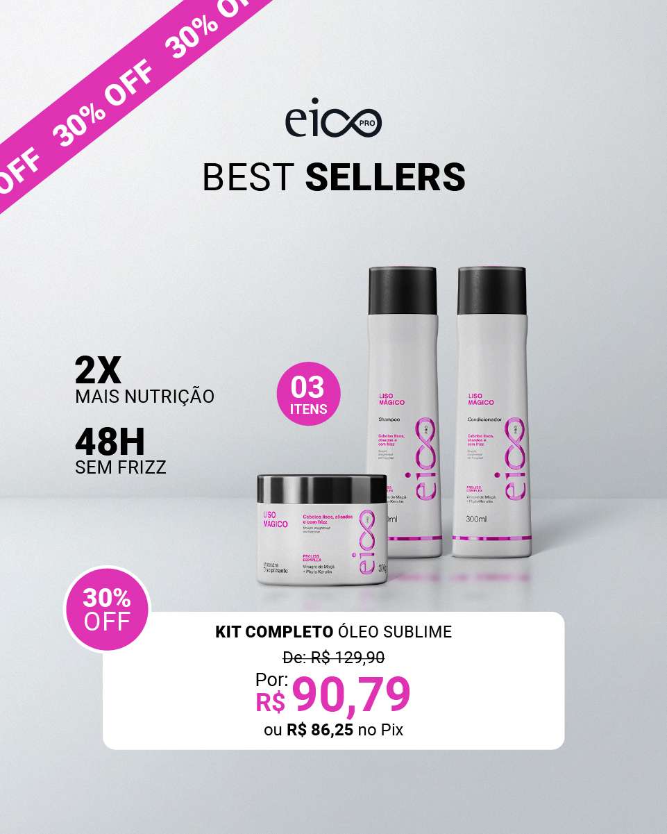 Eico Pro: Nossa linha mais avançada une tecnologia, inovação e expertise profissional. É composta por tratamentos completos com eficácia comprovada em laboratório: Óleo Sublime, Liso Mágico, Força & Crescimento, Tratamento Obrigatório e Hydration Expert.